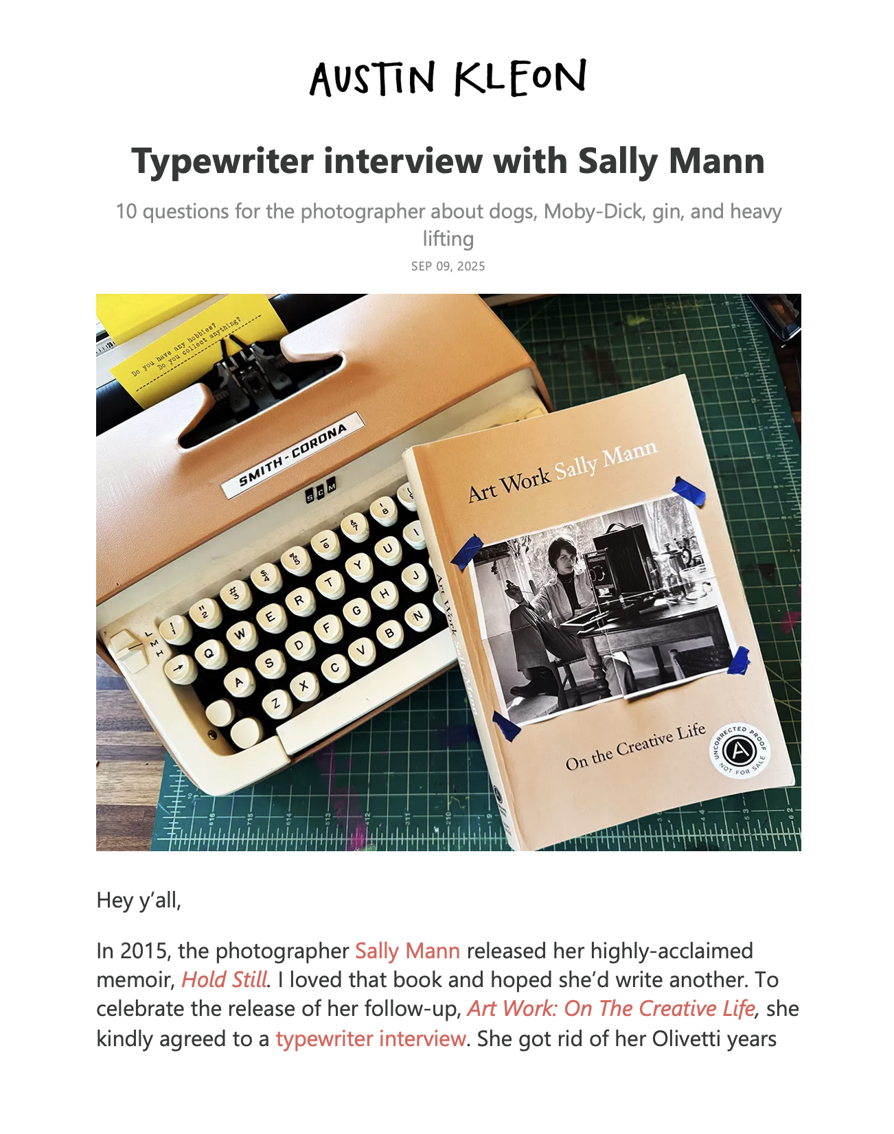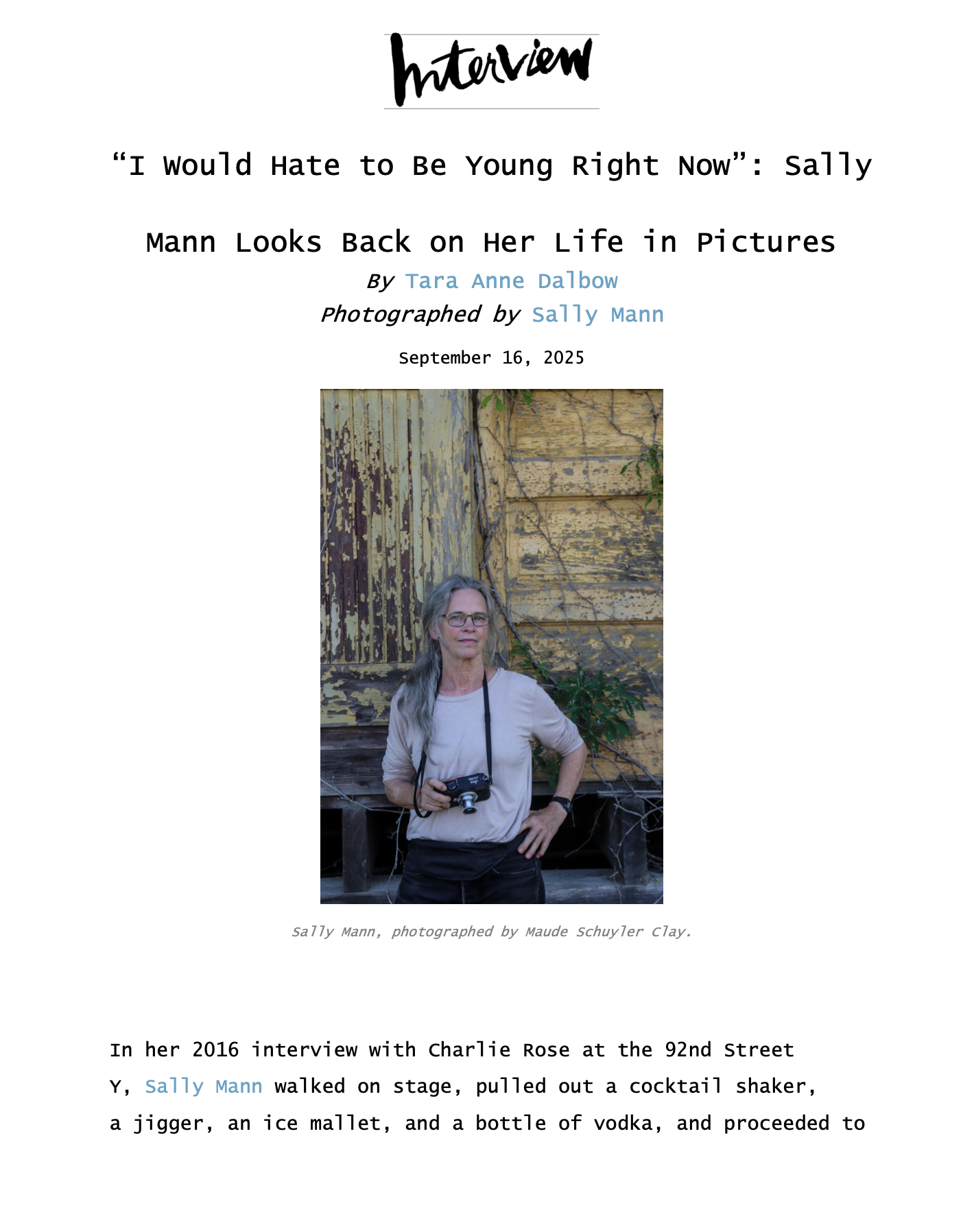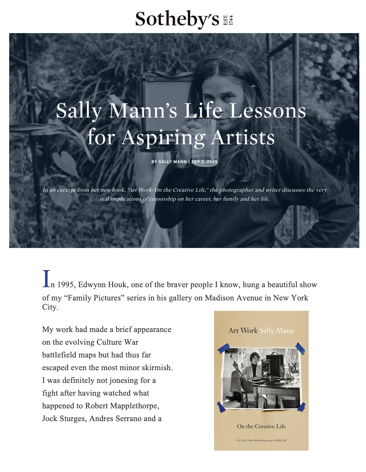 “If it’s possible to learn fearlessness—or cussedness or dust-yourself-offedness or stick-to-itiveness—Sally Mann is the one who could teach it to you. Sally Mann may be the only one who could teach it to you. This book will make you brave.”